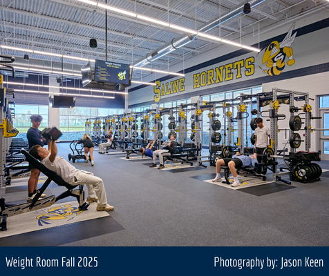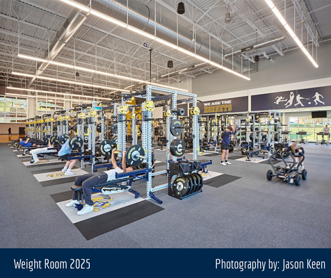- Weight room construction is underway on the north side of the building, with a connection to the existing auxiliary gym. The new weight room will triple the footprint of the existing weight room to help the district meet increased demand by athletic teams and PE classes before, during, and after school.