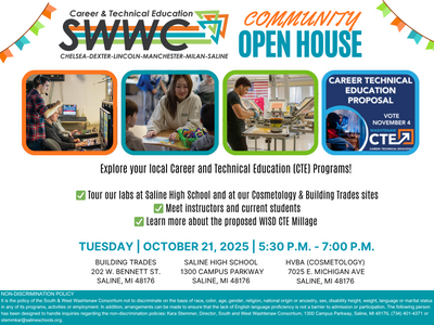 Learn more about the millage or view a pre-recorded Zoom Informational session at www.washtenawisd.org/ctemillage. Learn more about the SWWC at www.theswwc.org.
