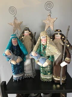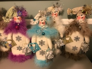 Having four daughters, JEAN SCHULTZ began creating dolls over 25 years ago. She soon started creating her own patterns and developed these dolls as gifts for friends and family. Her whimsical Santas evolved and these continue to be her best sellers as each is unique with selected fabrics and distinctive embellishments. Garage sales, antique and “repurpose” stores and unique materials from draperies and upholstery are her best source for her creative mind. Her business name, Whimsical Wishes, comes from these searches as she creates and envisions each Santa. A local sheep farmer provides the wool for the Santa’s beards. Her favorite customer story comes from an employer who wished to “be a bit whimsical” and gifted each of her employees with a “Jean Schultz Santa” one year---the whimsy came as she selected each Santa to match with the employee’s personality. Enjoy a bit of whimsy yourself as you enter this special craft show booth.