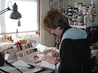 PATTI MONROE-MOHRENWEISER has been a full-time working artist since 1997. While calligraphy was her main focus when she began participating in the Saline Craft Show, things began to change when her husband Mark joined the team full-time. Their offerings now include a collection of functional pottery, much of which is created using vintage license plates as the moulds. These "pieces of history," including mugs, tumblers, bowls, plates, ornaments, and magnets, make unique and thoughtful gifts. Mark and Patti are even able to create custom items, as they now have license plates from all 50 states. A popular wedding gift has become a mug for both the bride and groom from each of their respective home states. Mark and Patti recently expanded their line even further by creating functional serving pieces incorporating the State of Michigan. With items for every budget, these pieces are great for entertaining, for display, or as a thoughtful hostess gift.